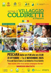 Da domani 31 ottobre, Piazza Salotto a Pescara si trasformerà in un grande spazio a cielo aperto dove la campagna incontra la città: arriva il Villaggio Coldiretti, l’evento che celebra l’agricoltura italiana, la qualità dei prodotti locali e il legame autentico con il territorio.